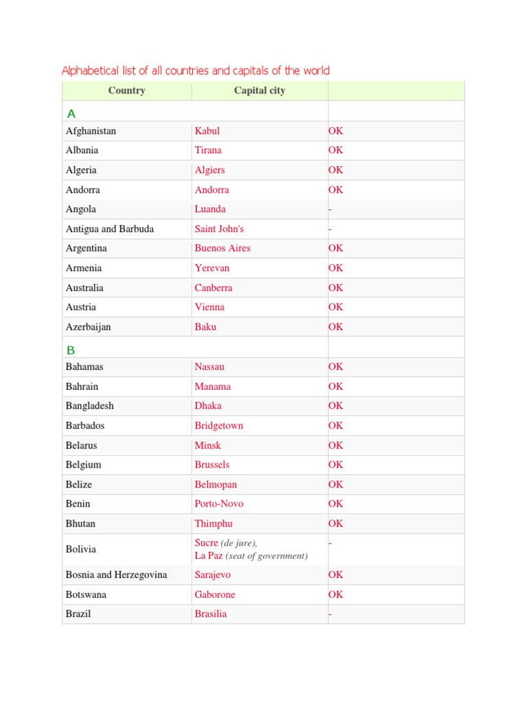 50 states in alphabetical order. In this list, we have included the 196 countries of the world and their respective capitals. This list also provides the most recent u.s. List of all countries of the world and their capital cities in alphabetical order. Looking for a specific country?